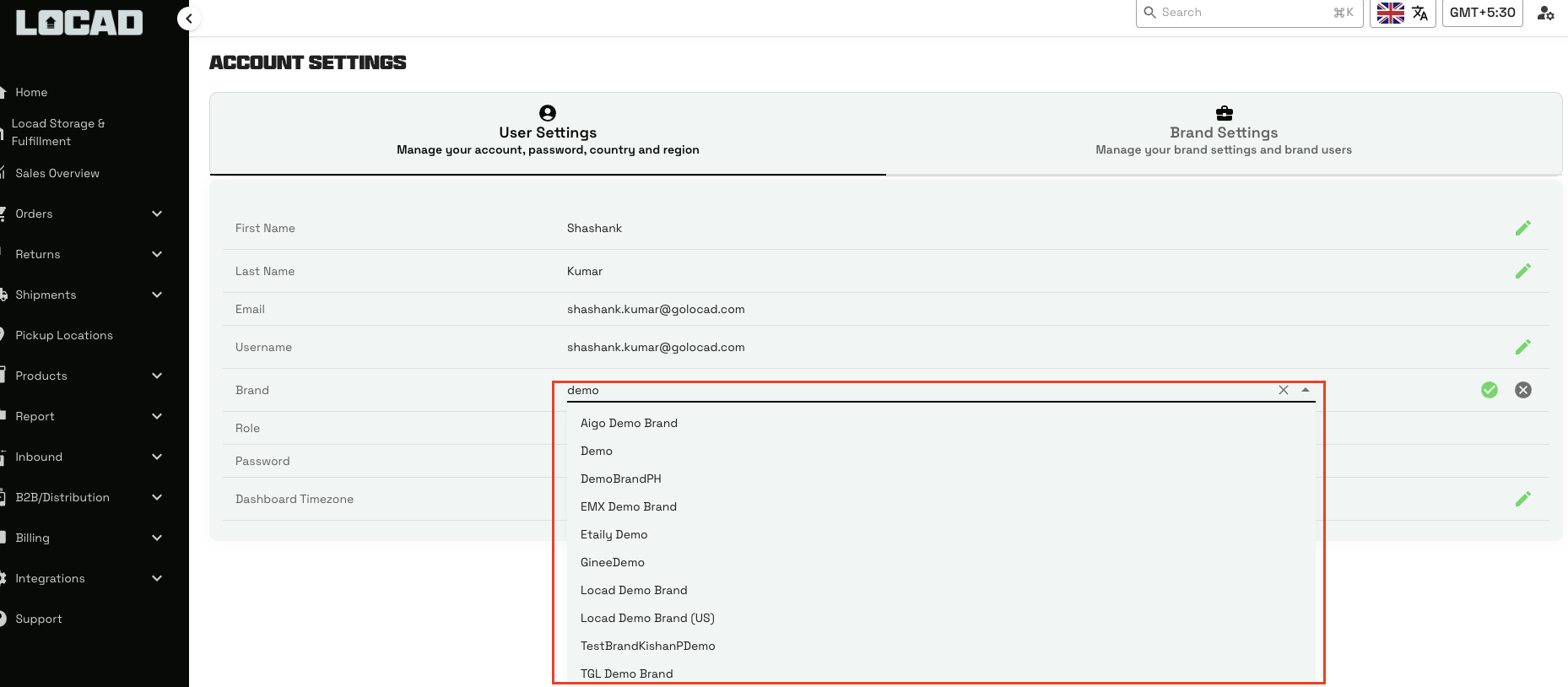 If you have access to multiple brands, click the pen icon under Brand to open a dropdown menu and switch between different brand dashboards.