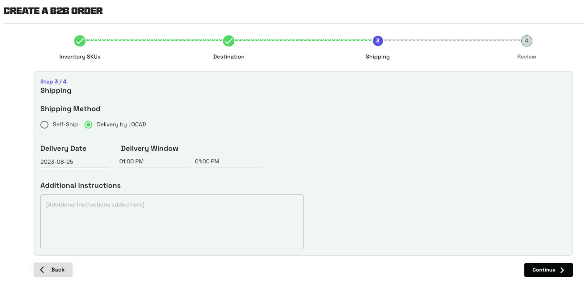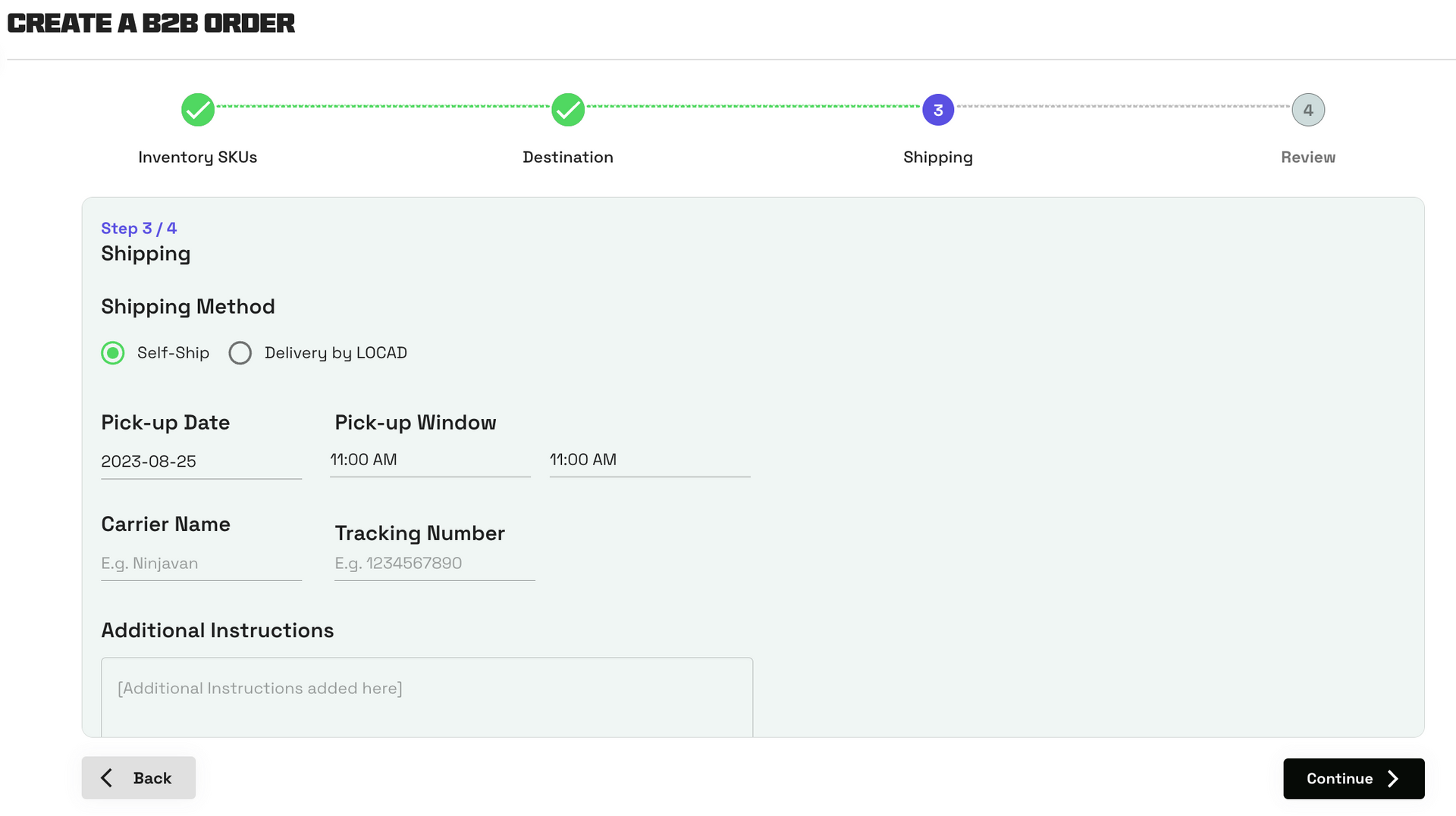 2. Self-Ship: You will arrange for your own courier to pick up the order. You must provide: