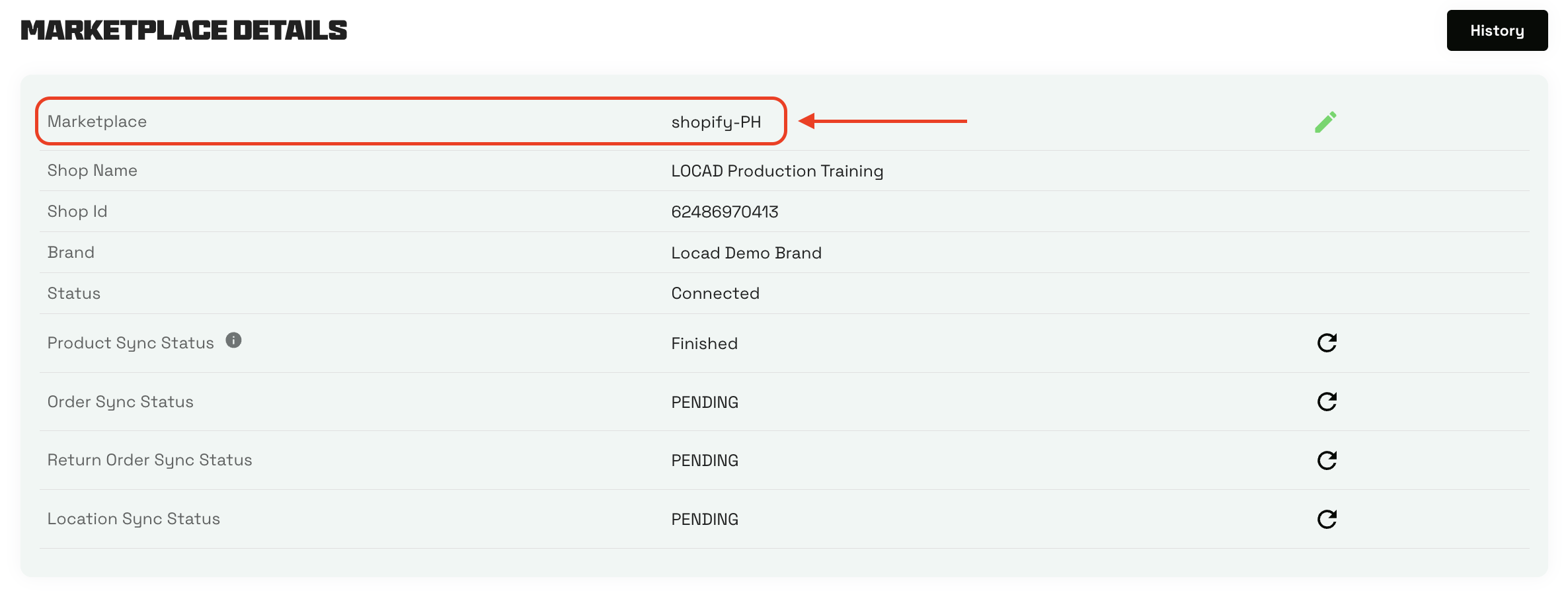 If you are unsure which connection name to select, go to Marketplace Integrations > Select the Marketplace > Details. Look for the name listed under the Marketplace field.