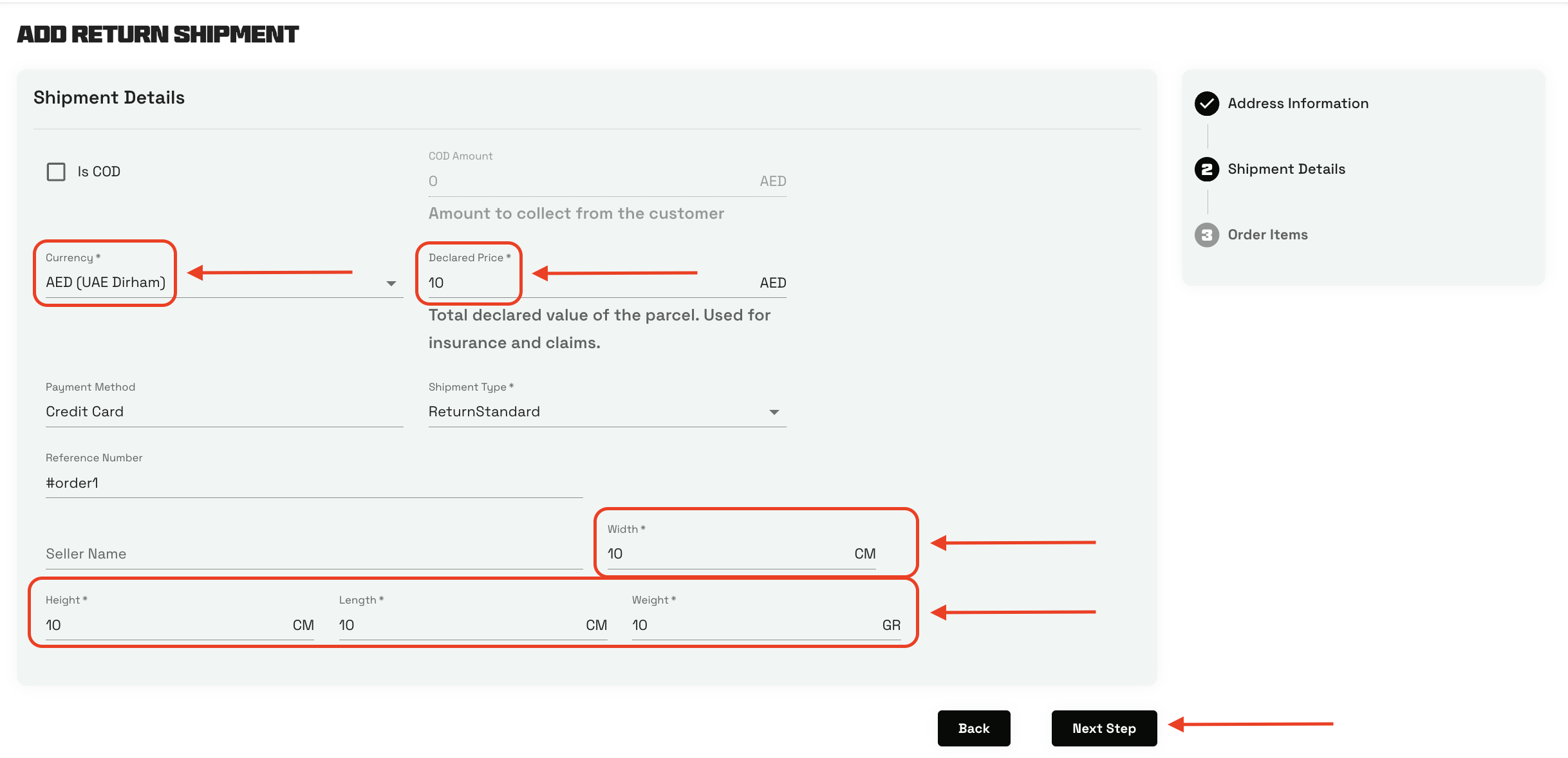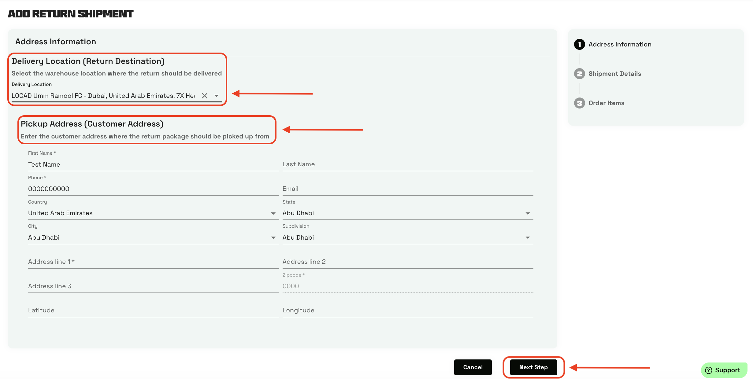 Delivery Location: Select the warehouse where the return should be delivered (e.g., LOCAD Umm Ramool FC).