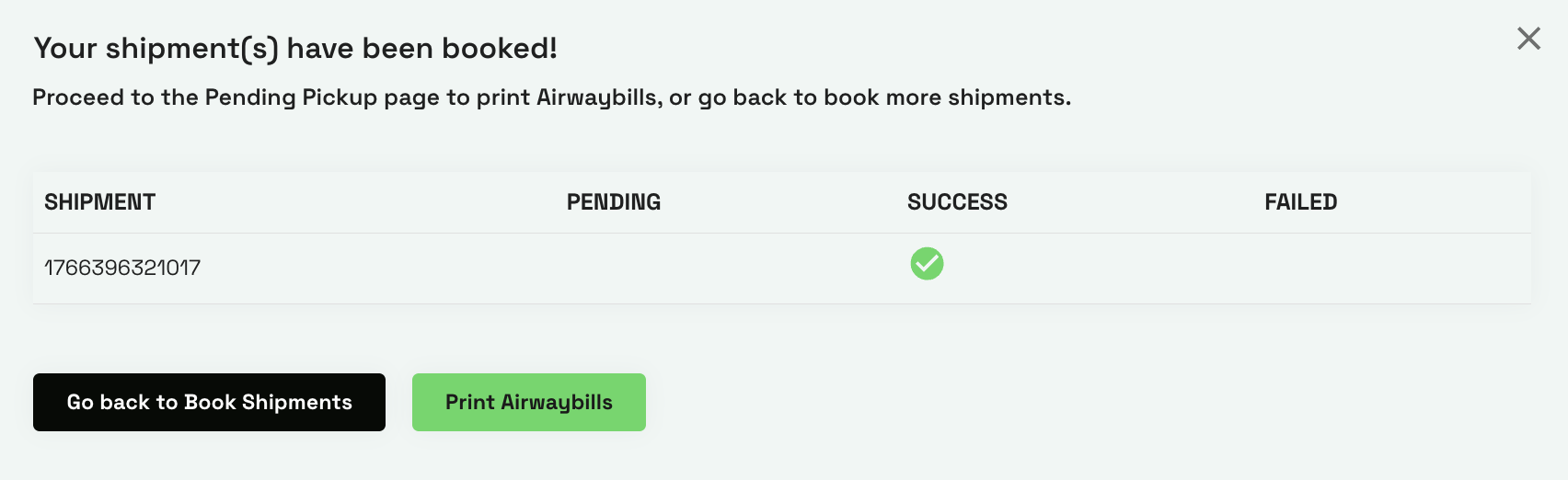 Once the loading completes, you will see a success message: "Your shipment(s) have been booked!"