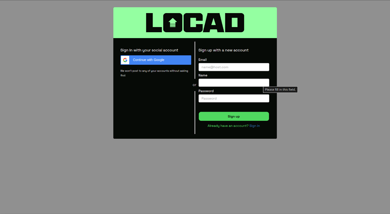 Click the Sign up / Login to Locad button.