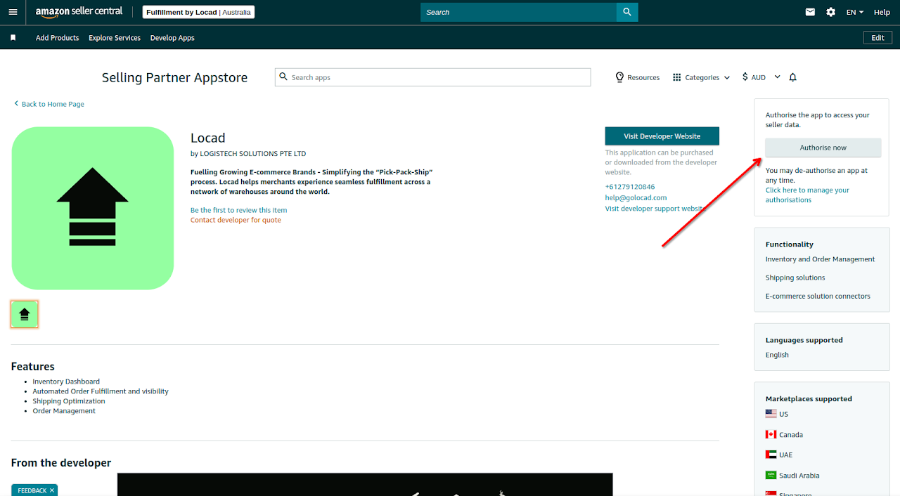 You will be redirected to the Amazon Seller Central Appstore page for Locad.