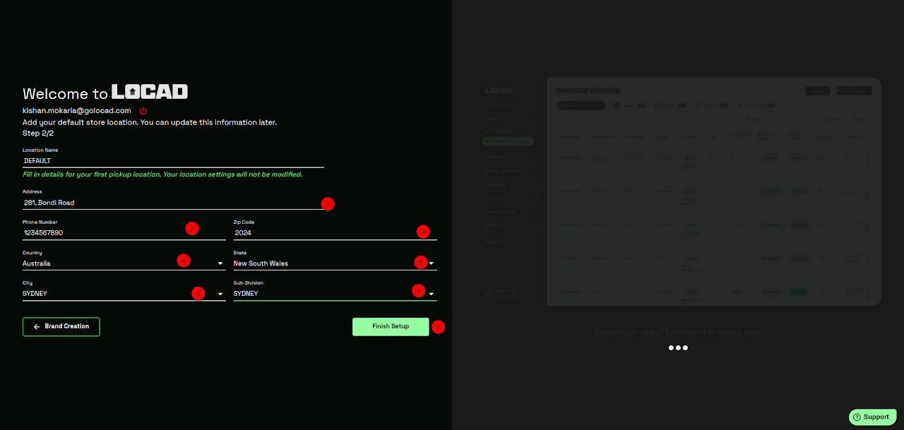 You will be redirected back to the Locad OMS login page. Log in to your account.