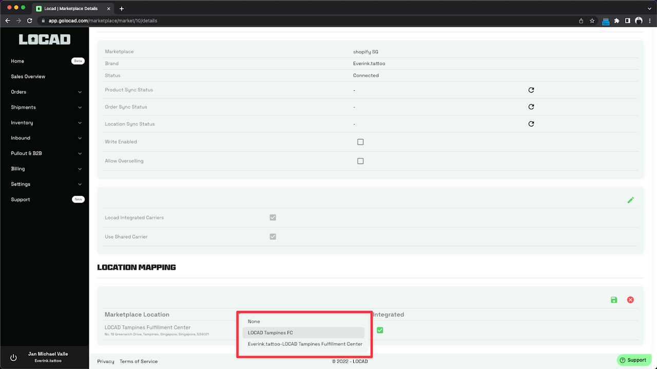 Double-check the Location Mapping section. Ensure the correct Locad Fulfillment Center (FC) is mapped to the corresponding Amazon marketplace location.