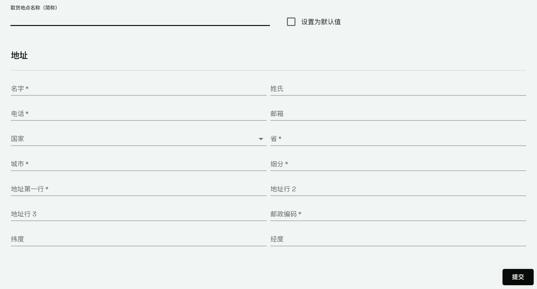 您需要输入取货地点名称、完整地址、联系人姓名和电话号码,然后点击“提交”保存。您还可以将特定地址设置为默认取货地点,这意味着在创建发货单时,系统会首先选择该地点。另请注意,最新的默认地点设置将始终覆盖之前的设置。