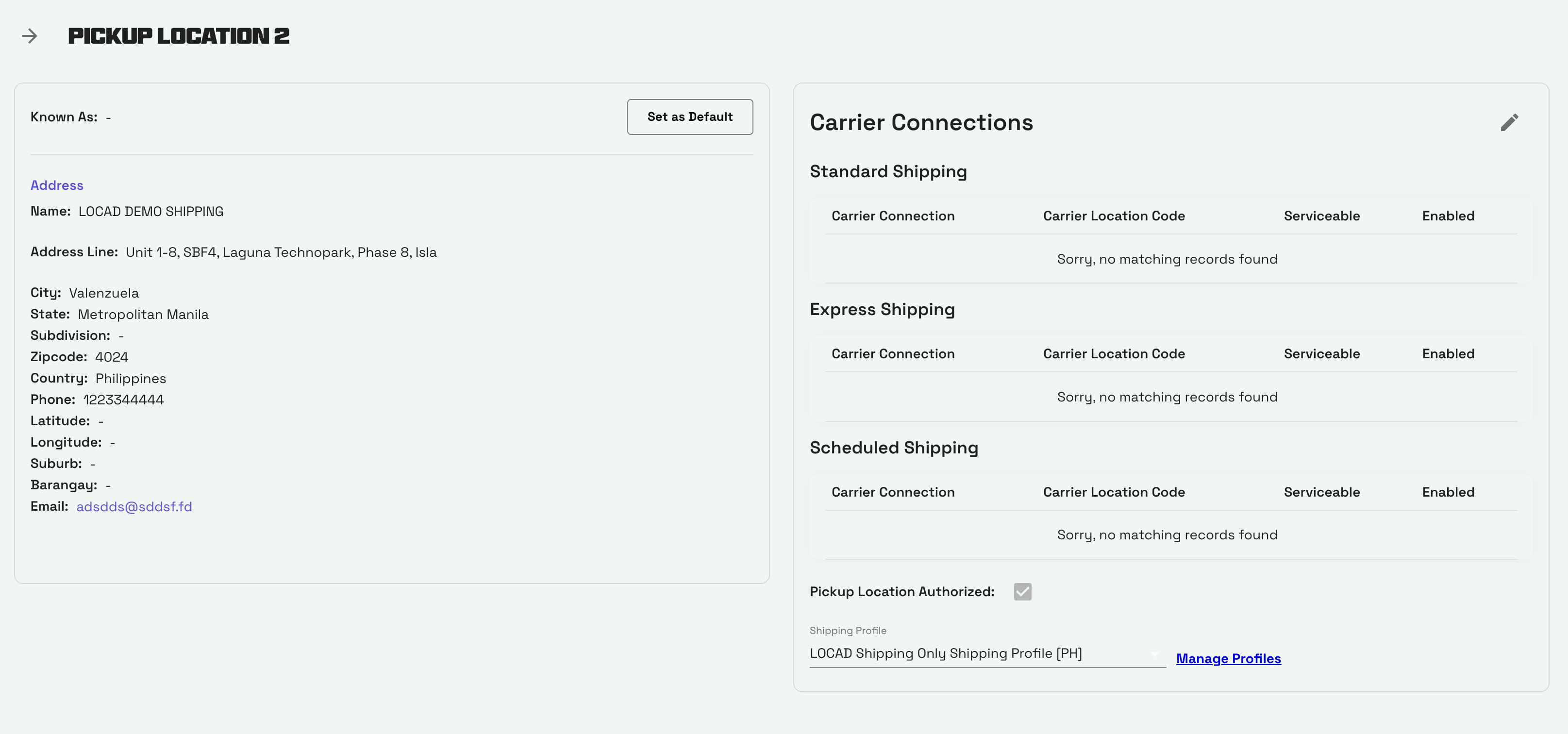 创建取货地点时,系统将默认分配的运输配置文件。运输配置文件用于定义您的物流商分配偏好。如需修改此设置,请点击“管理配置文件”进行修改。