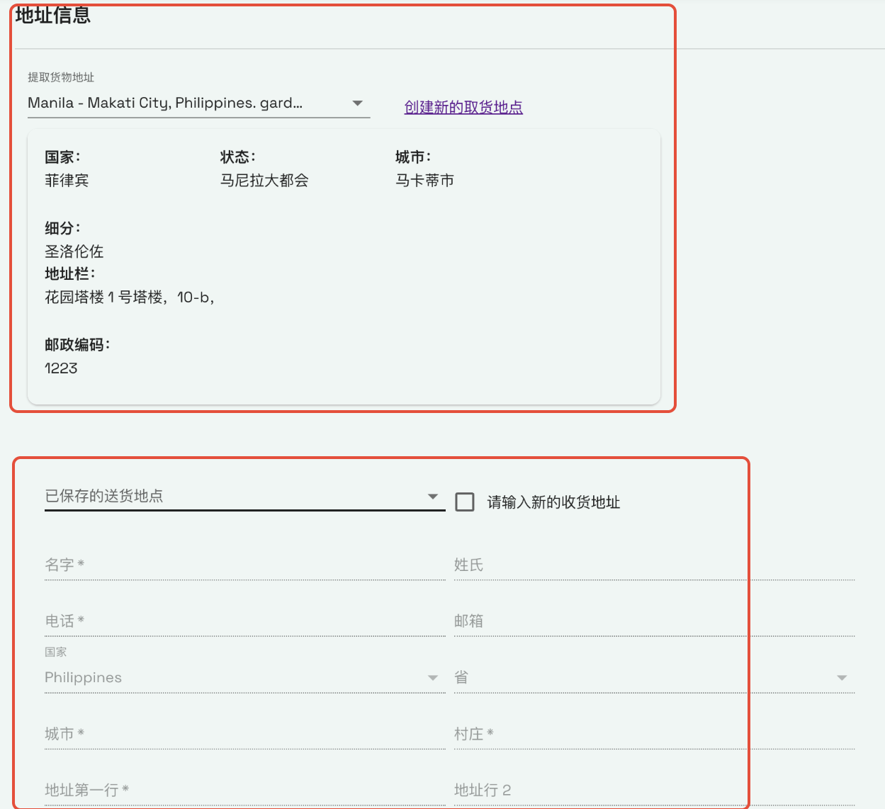 到“添加发货”页面,您可以在该页面输入地址信息、发货详情和订单信息。