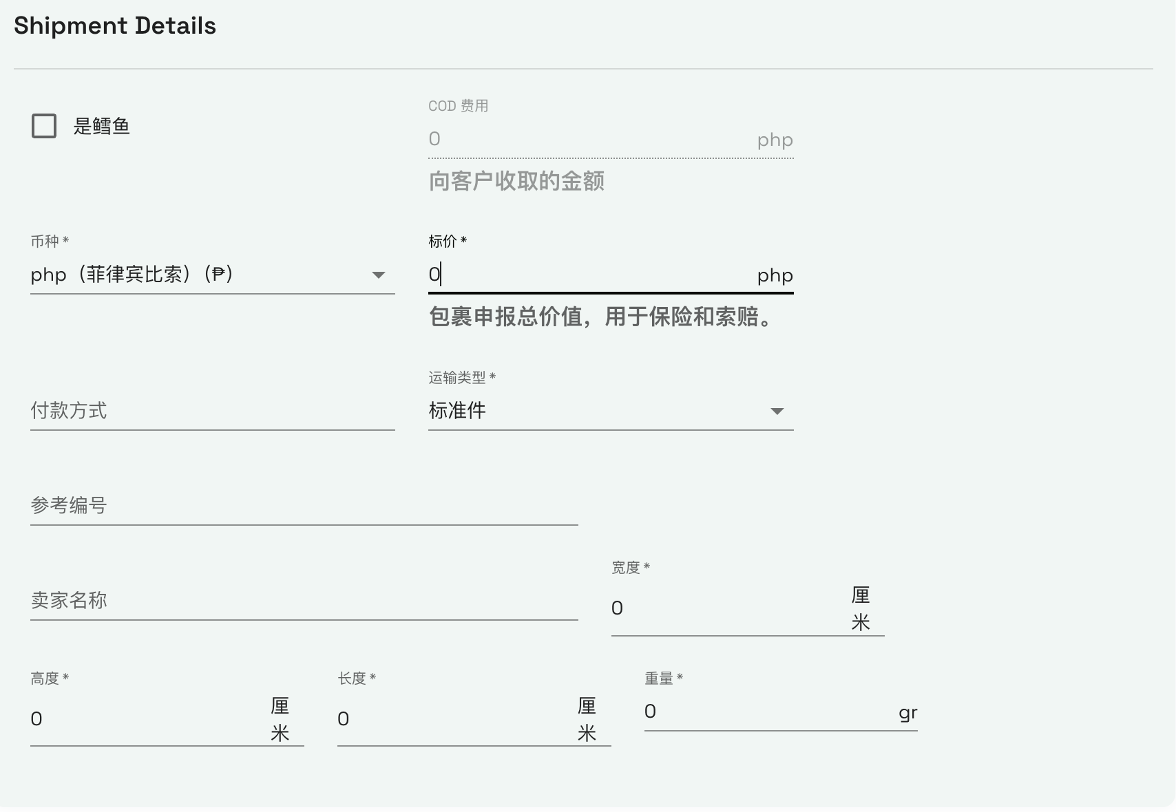 COD 金额 (COD Amount):仅在 COD 货件时必填。