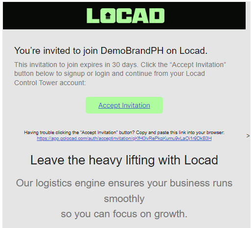 品牌可以选择邀请用户加入 Locad 帐户。如果您有多名团队成员需要访问 Locad 系统,这将非常有用。