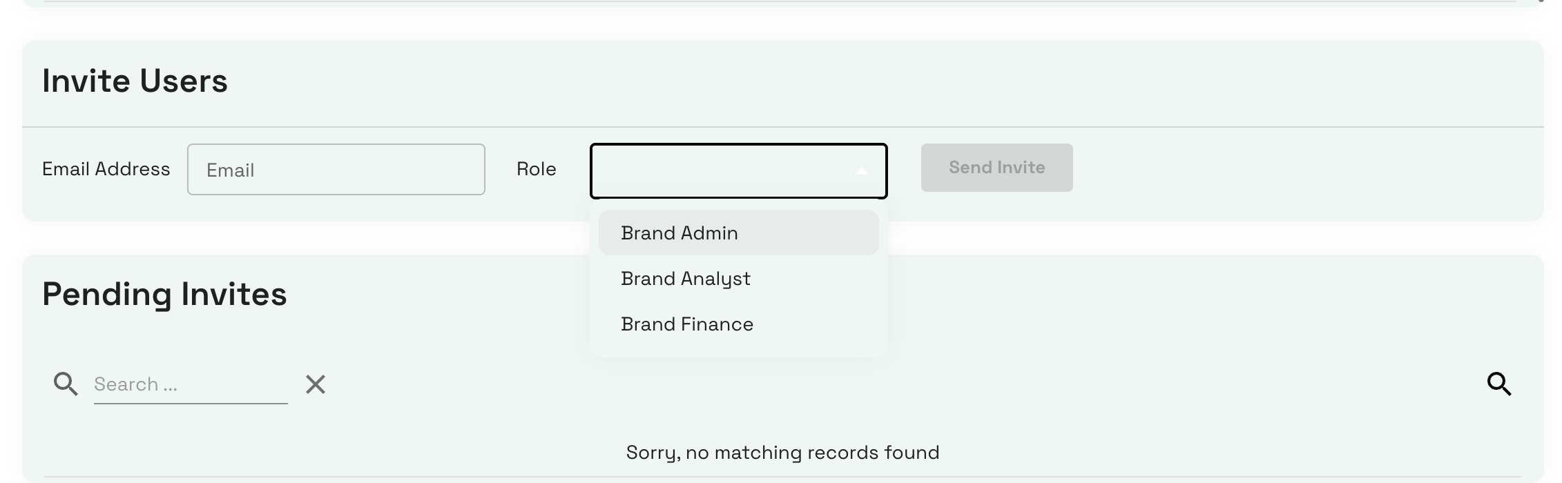 - 要添加和邀请新用户,只需在“邀请用户”下输入电子邮件地址,然后在下拉选项中选择他们的角色即可: