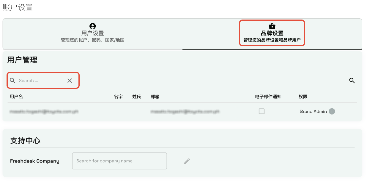 Brand Analyst角色只能在用户管理部分看到用户。 - 品牌财务角色可以查看交易数据和报告,包括账单。