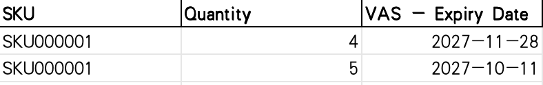 ‼️注意:如果您产品不需要有效期管理(通常见于食品/保健品/护肤美妆…等快销品),请勿在 ASN 中填写产品有效期。否则,系统无法成功上传您的 ASN。