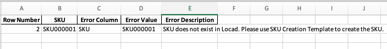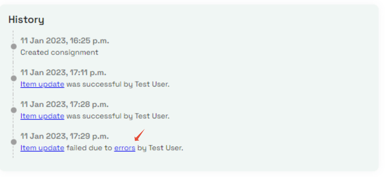 历史部分(History)将显示您的ASN进度。如果文件错误(例如,它包含一个尚未上传到Locad系统的SKU),上传失败,需点击错误(errors)查看错误描述,并重新修改。