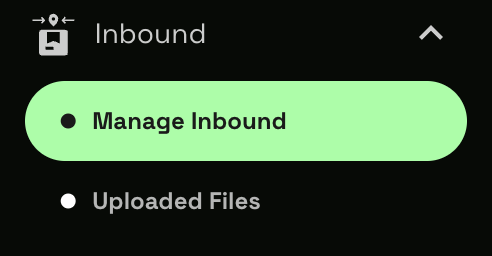 1.登录 Locad 网站。点击左侧菜单栏中的“入库”(Inbound),然后点击“入库管理”(Manage Inbound)。