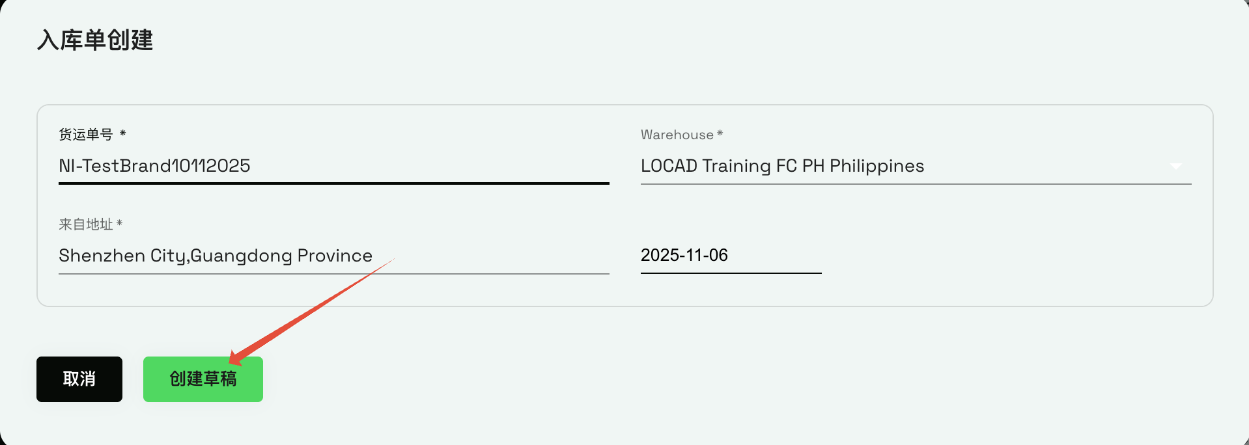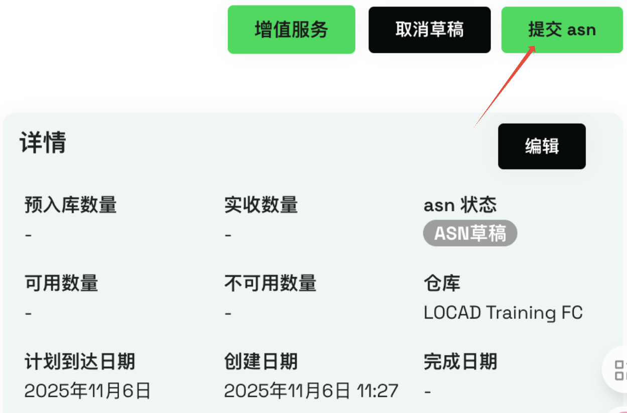 4. 点击“创建草稿”(Submit)。这将会生成一份ASN(预约发货通知)的草稿,这不是最终的提交,允许您在提交之前修改信息。