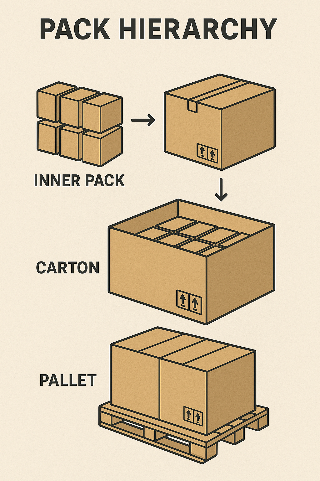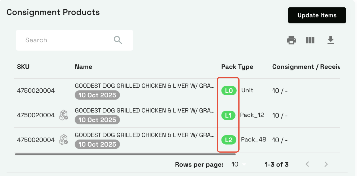 确定包装类型:你的产品可能有不同包装规格,例如 Unit(L0)(独立包装)、Pack_12(L1)(包装内含12件产品)和 Pack_48(L2)(包装内含48件产品)。