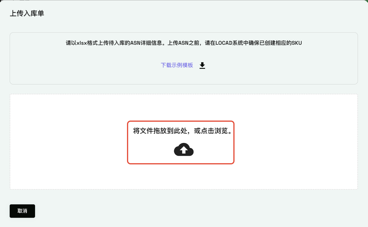 - 步骤四:上传文件,提交ASN