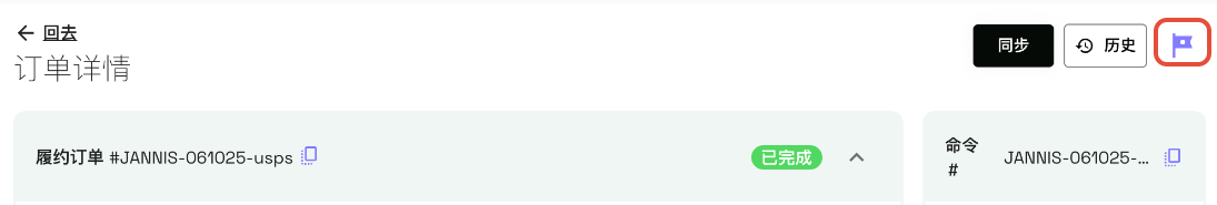 提示:如果要查看页面导航,可以点击“历史记录”按钮右侧的旗帜图标,我们已设置好了分步导航,帮你更好的探索订单详情视图。