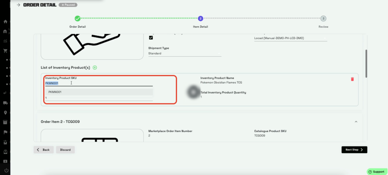 - 编辑库存产品及其每个 cSKU (库存SKU)的数量:更新订单(cSKU)的库存产品及其数量。