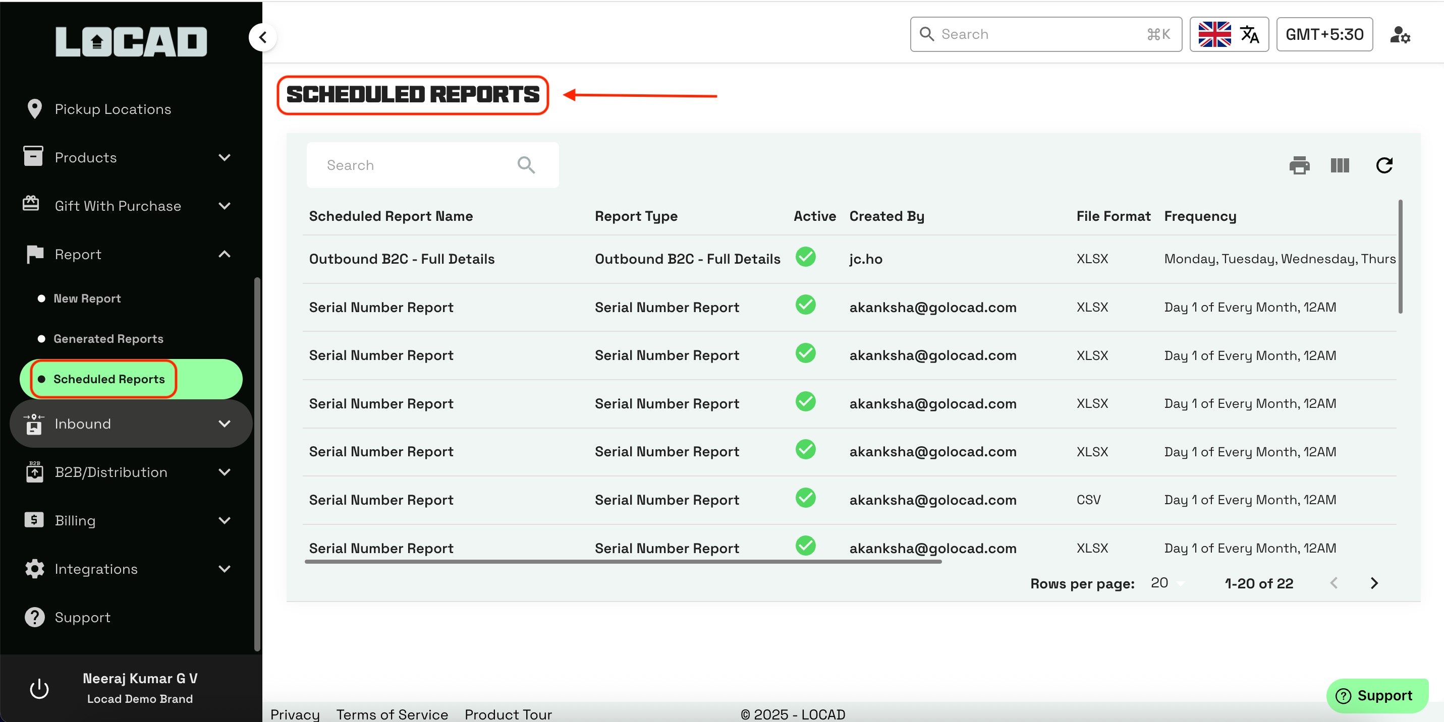 答:所有已启用的定期报告都列在“报告”>“定期报告设置”选项卡中。您可以在这里查看它们的发送频率、收件人和状态。 我可以将计划报告发送给非Locad用户吗?