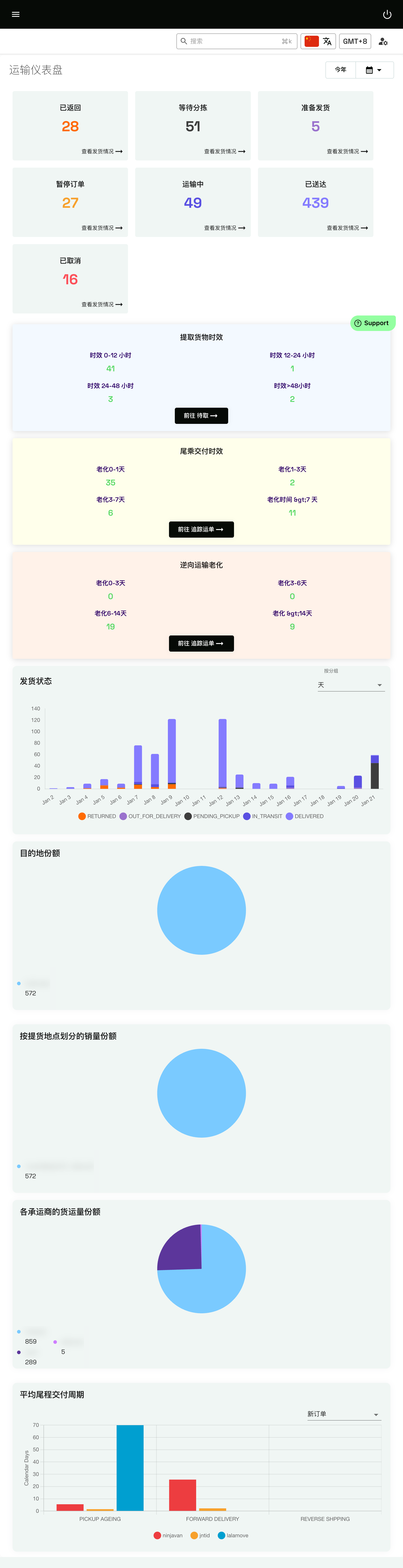 - 运输仪表盘:发货概览