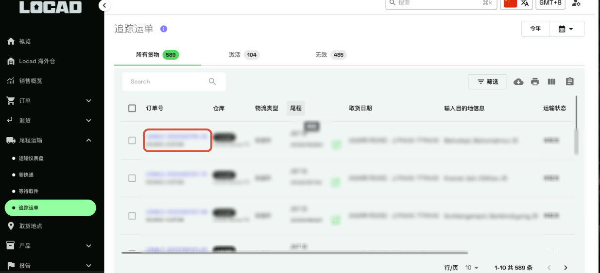 包裹被快递员取走后,您可以在“尾程运输 > 追踪运单”中查看其运送状态。这里是您追踪所有进行中和已完成订单的主要页面。