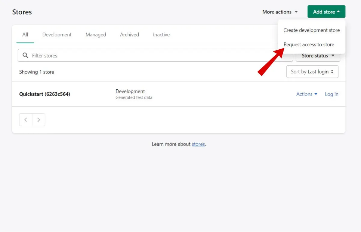 点击“添加商店”按钮,然后选择“请求访问商店”(Request access to store)。